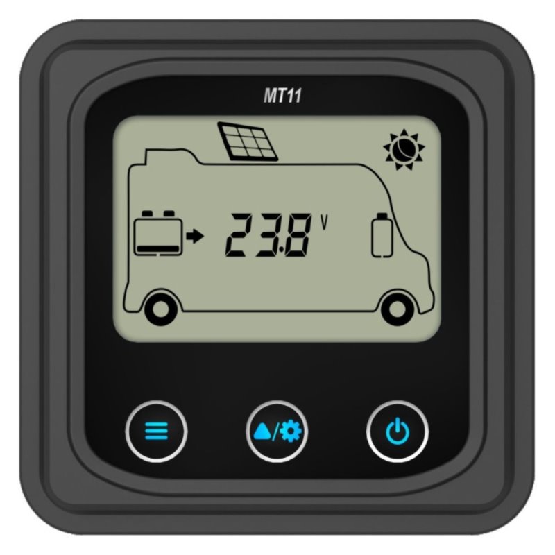 Externí displej řady MT je příslušenství, které je kompatibilní s regulátory řady DuoRacer. Můžete monitorovat provozní data a pracovní stav regulátoru pomocí LCD. Na externím displeji můžete procházet parametry regulátoru, nastavovat typ baterie a jednotky teploty a mazat vygenerovanou energii. Je vhodný pro RV, karavany, lodě atd.