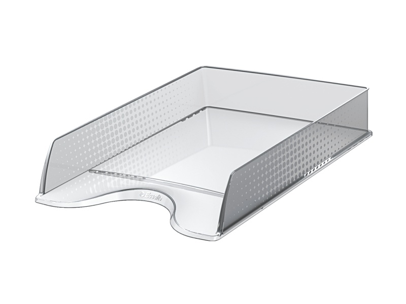 Odkladač Esselte Europost Fusion transparentní Moderní odkladač pro uložení dokumentů formátu A4 na pracovním stole s unikátním embosovaným povrchem v klasických barvách. V průhledném provedení. Unikátní tečkovaný embosing. A4. Lze kombinovat s ostatními výrobky z řady Esselte Europost Unikátní embosovaný povrch (tečkovaný) po stranách odkladače Kolmé nebo předsazené…