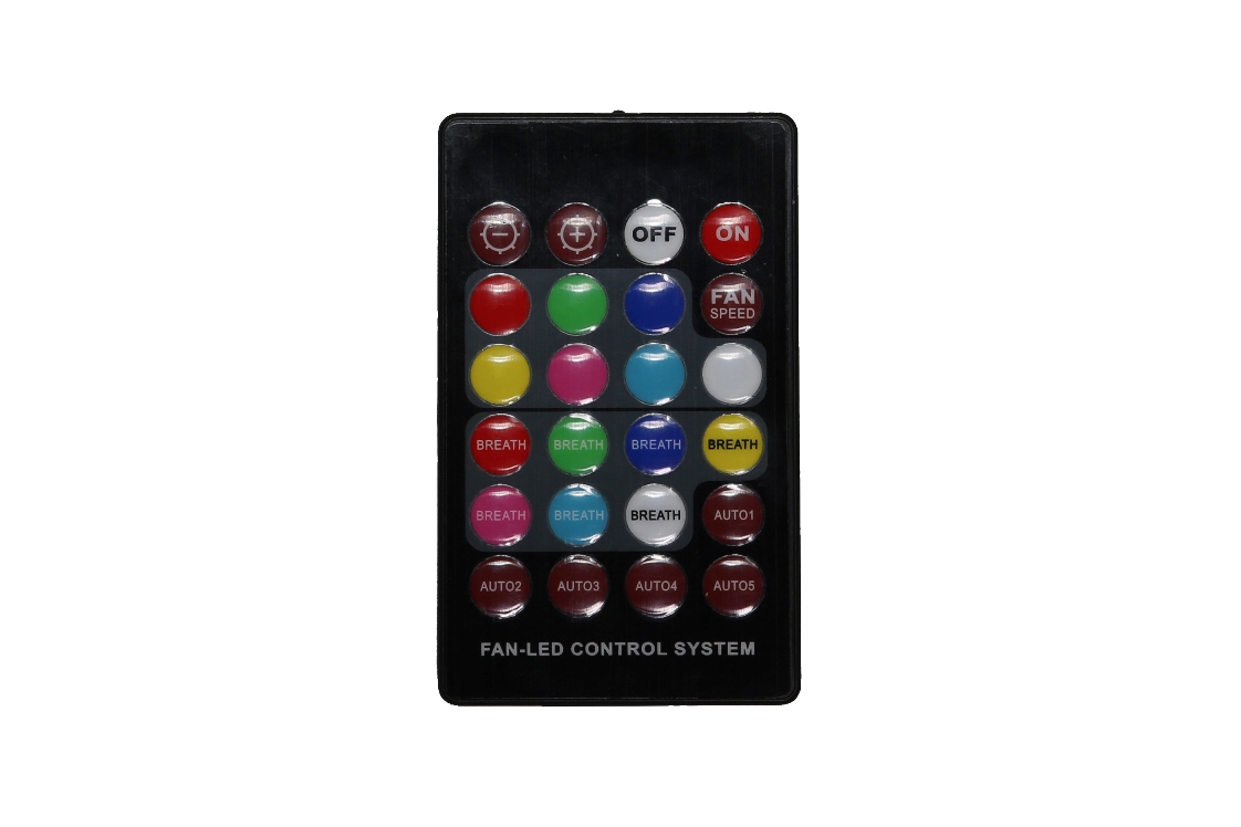 - dálkový ovládač pro přepínání barev a rychlosti ventilátorů
