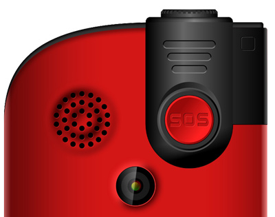 Na zadní straně telefonu se nachází SOS tlačítko, po jehož