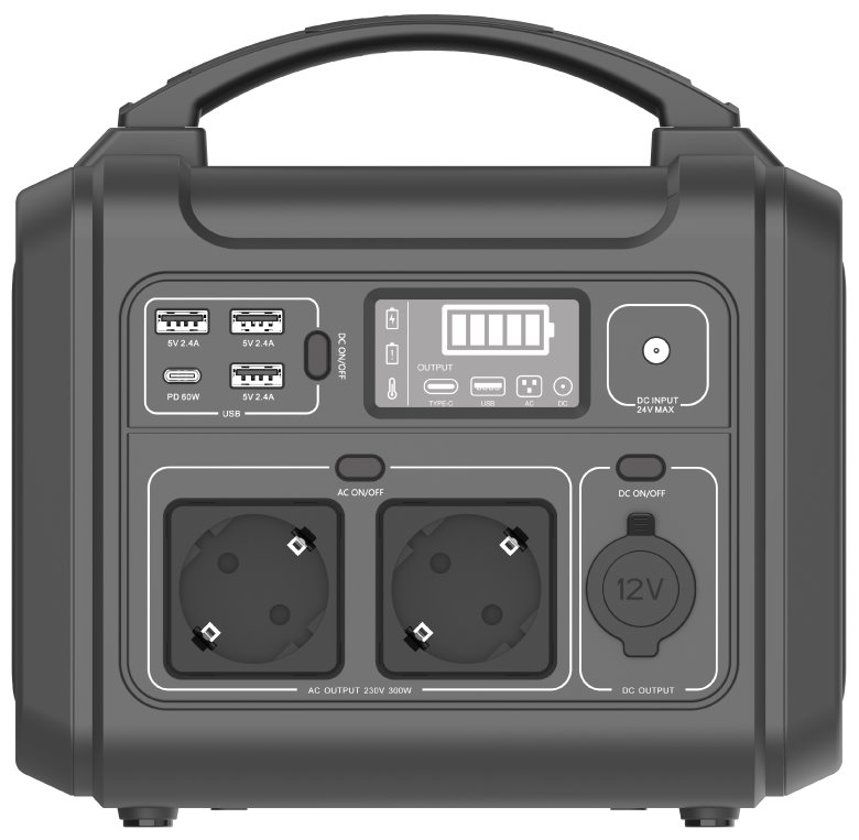 Multifunkční nabíjecí stanice v kompaktním provedení s vysokou kapacitou 28 600 mAh (313,17 Wh) je ideální například pro kempování, cestování, práci v terénu nebo jako záložní zdroj energie v nouzových situacích. Disponuje jedním DC 12 V výstupem a dvěma AC 230 V výstupy poskytujícím výkon 300 W. Pro nabíjení mobilních zařízení můžete využít tři USB-A porty či konektor USB typu C s podporou Power Delivery 60 W. Port USB typu C lze využít nejen pro nabíjení široké škály zařízení, ale i pro nabíjení samotné stanice. Pro informace o stavu nabití či zobrazení upozornění slouží přehledný LCD displej. Zajisté potěší také vysoce výkonná LED svítilna na zadní straně či praktická rukojeť pro pohodlné přenášení. Zařízení má všechny nezbytné ochrany např. proti zkratu, přetížení, přepětí, nízkému napětí nebo přehřátí. Nabíjení je možné realizovat kdekoliv pomocí přenosného solárního panelu (není součástí balení) nebo skrze přiložené napájecí adaptéry do sítě a do autozásuvky.