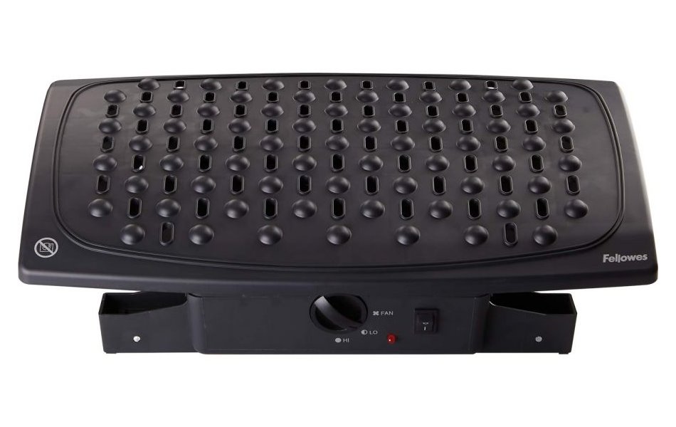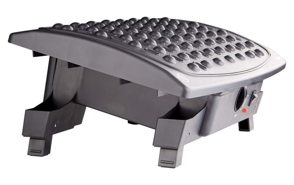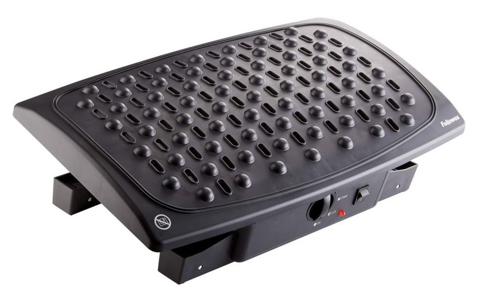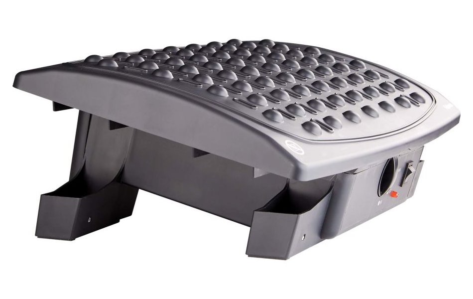 Ergonomická podpěra zajistí komfortní práci u stolu doma i na pracovišti. Díky vestavěnému ventilátoru příjemně chladí chodidla v letních měsících v zimních oceníte možnost vyhřívání. Podpěra tak udržuje nohy v teple, tím podporuje žilní návrat krve k srdečnímu svalu a předchází bolestem zad. Vytažením nožiček jednoduše nastavíte požadovanou výšku i sklon opěrné plochy. Teplotu je možné regulovat přepnutím příkonu 125 W nebo 250 W. Délka přívodního kabelu činí 1,25 m.