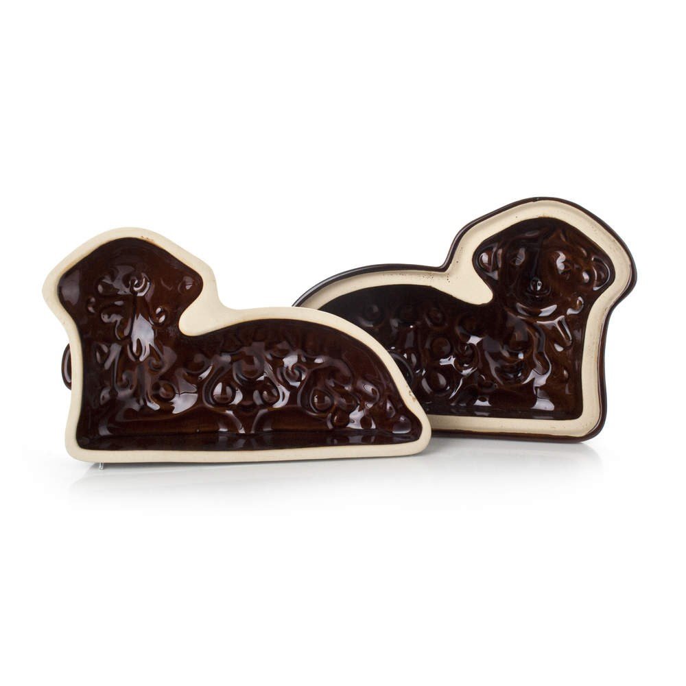 Dostali jste chuť na dokonalého velikonočního beránka? Upečte si ho v keramické formě Banquet s hnědým glazurovaným povrchem. Skládá se ze dvou částí a horní polovinu snadno odklopíte díky dvěma úchytkám. V troubě vydrží teploty do 250 °C. Keramika nejdříve absorbuje teplo, které postupně uvolňuje. Vaše moučníky tak budou vláčné a zároveň rovnoměrně propečené. Snadno ji umyjete v ruce.