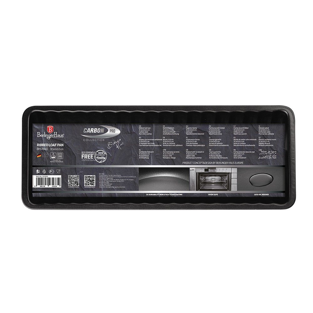 Lehká pečící forma Berlingerhaus Carbon Pro Collection BH-7640 na srnčí hřbet je vyrobená z vysoce kvalitní uhlíkové oceli a má 3vrstvý nepřilnavý titanový povrch, tudíž je ideální pro styk s potravinami, pečení s minimem tuku bez připalování i pro použití v troubě o maximální teplotě až 240 ℃. Jedná se tak o EcoFriendly produkt, neboť neobsahuje žádné škodlivé látky, jako je například PFOA, olovo nebo kadmium.
