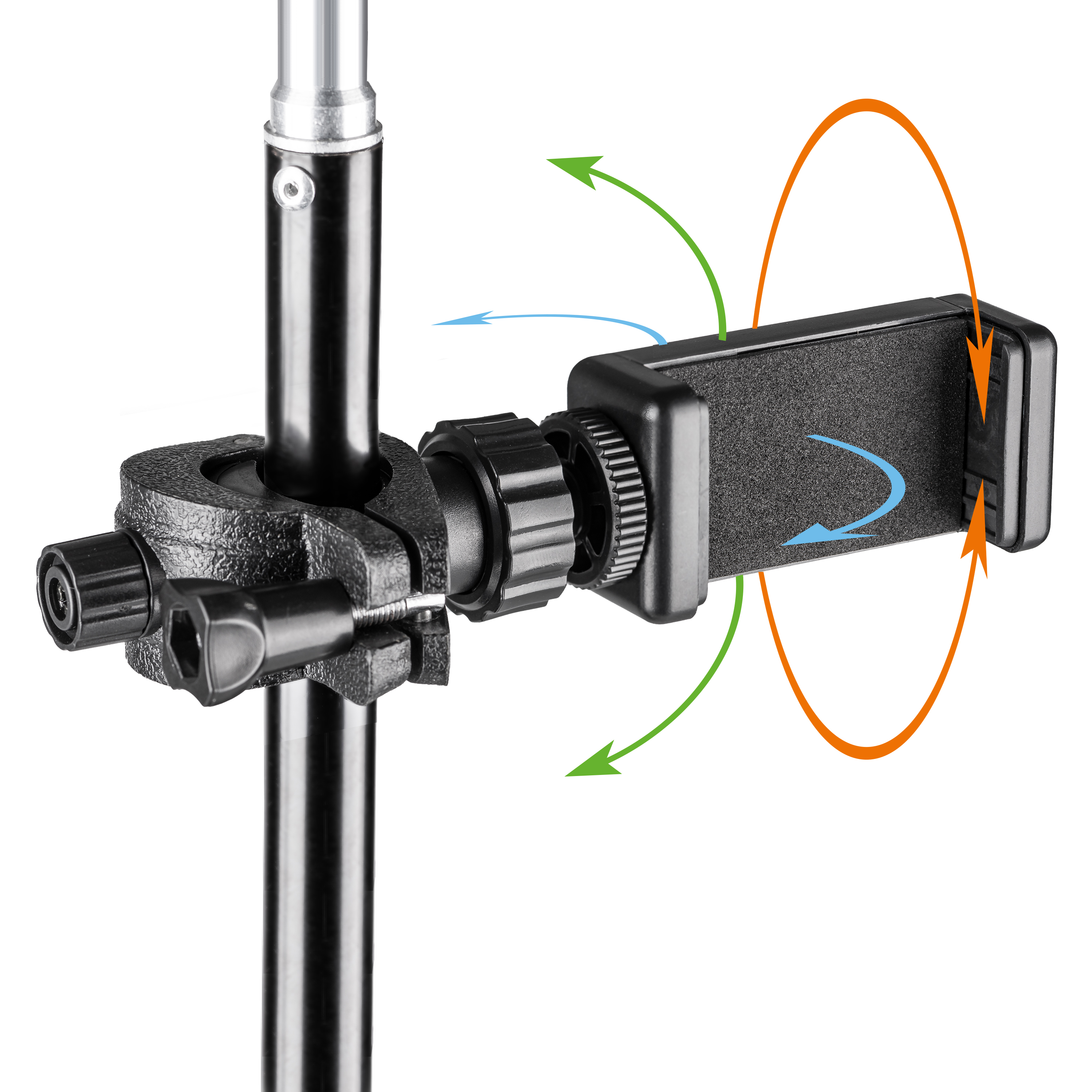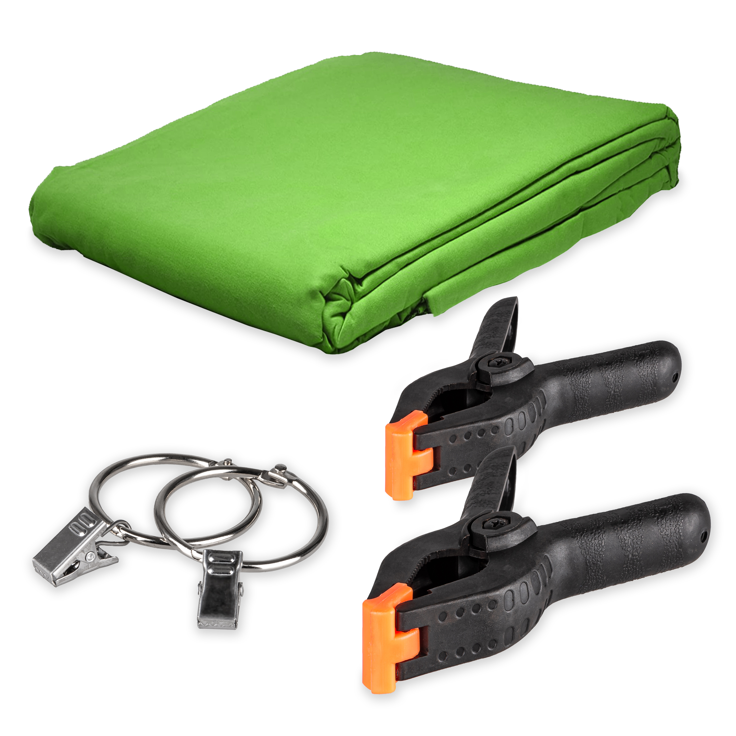 Bavlněné zelené plátno (greenscreen) o rozměrech 200 x 300 cm má praktické spony a kroužky pro snadné zavěšení na zeď a kruhové světlo se stativem a kulovou hlavou zase poslouží pro osvětlení motivu a pozadí. Upínací držák smartphonu nalezne uplatnění při různorodých činnostech, jako je například fotografování, natáčení či streamování. Drží smartphony v horizontální i vertikální poloze a lze jej použít se smartphony o šířce 58 až 88 mm a hmotnosti do 300 g. Stativ lze vysunout až do výšky 120 cm a unese jak prstencové světlo, tak i držák smartphonu či další vybavení, neboť se pyšní celkovou nosností až 3 kg.