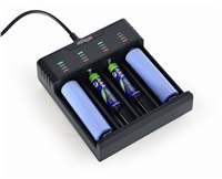 4slotová rychlé nabíjení baterie pro typy baterií: AAA / R03, AA /