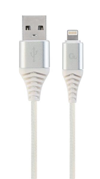 Gembird Premium cotton braided 8-pin charging and data cable, 2m, silver/white
