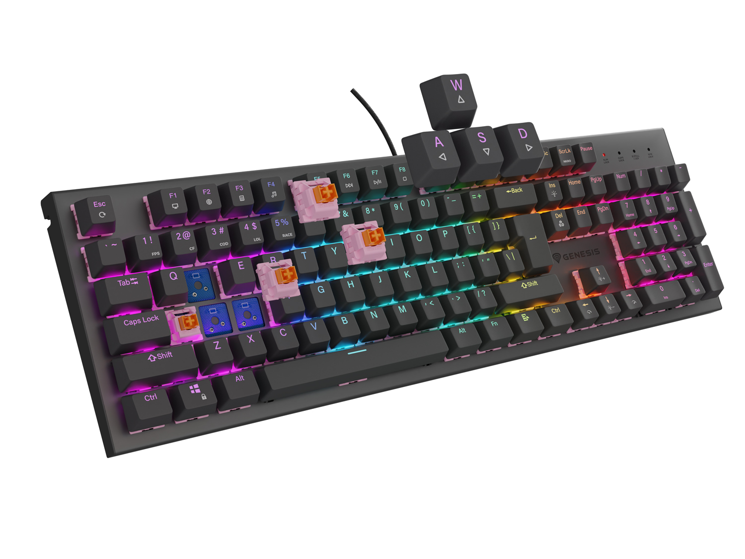 Počítače a kancelář  Počítačové příslušenství a doplňky  Klávesnice, myši, herní ovladače  Klávesnice  Herní  GENESIS mechanická herní klávesnice THOR 303/RGB/Outemu Peach Silent/Drátová…