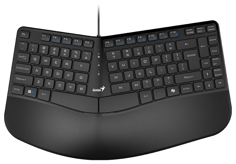 Ergonomická klávesnice zajišťuje optimální polohu vašich rukou a přispívá ke snížení tlaku na oblast zápěstí. Předností je samostatná klávesa pro vyvolání AI asistenta Windows Copilot a opěrka dlaní. K připojení klávesnice slouží 1,5 m dlouhý kabel zakončený USB konektorem.
