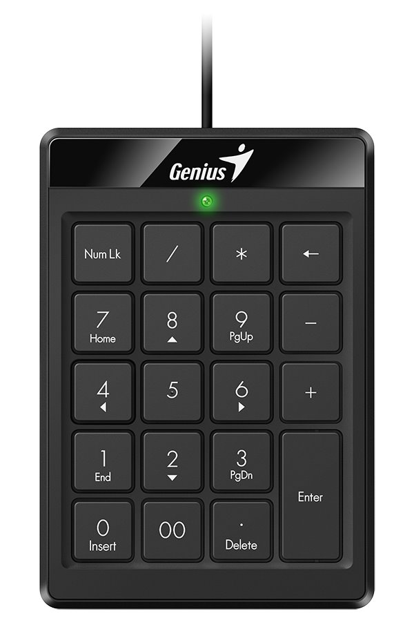 Externí numerická klávesnice ve slim provedení pro rychlé a pohodlné zadávání číselných údajů do PC či notebooku. Připojení k počítači je realizováno skrze 90 cm dlouhý kabel zakončený USB konektorem.