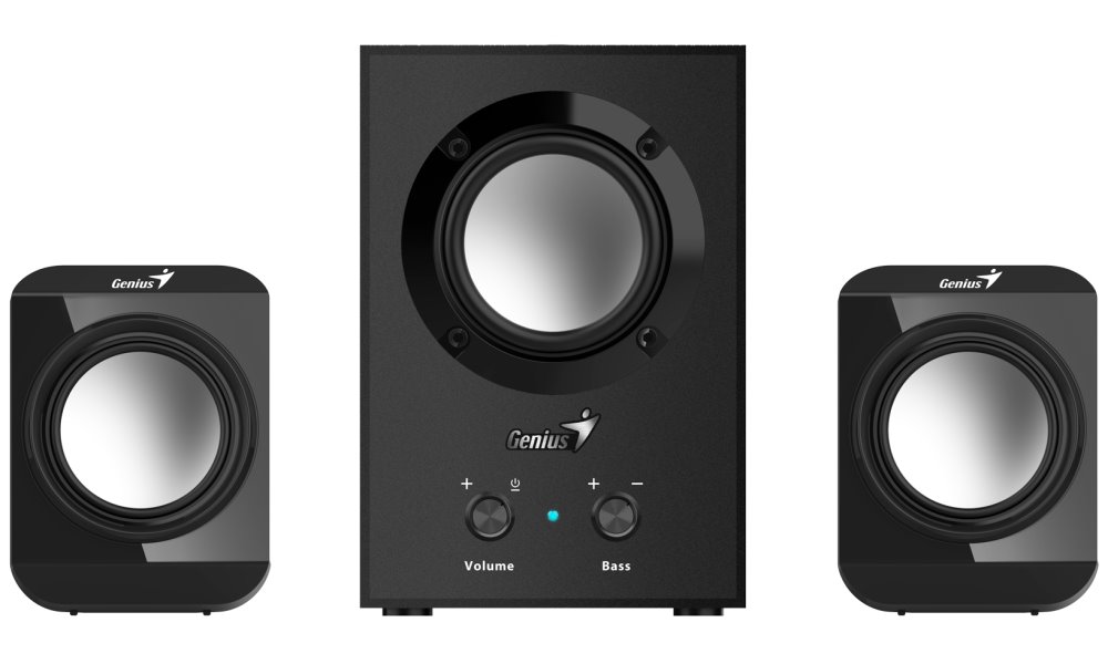 Multimediální reproduktorový systém v konfiguraci 2.1 s celkovým výkonem 10 W. 3" subwoofer nabízí dokonale hluboké basy a dva 2,5" satelity zajistí vysoké vokály. Na předním panelu se nachází samostatné ovládání hlasitosti a basů. Připojení je realizováno pomocí 3,5 mm jack konektoru.