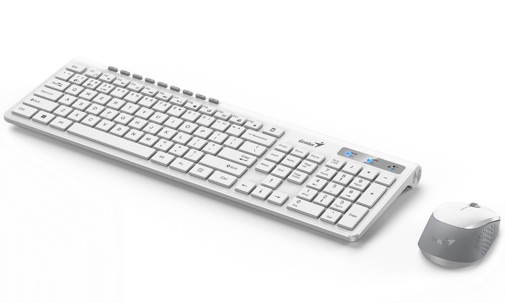 Kvalitní set klávesnice a myši pokryje všechny vaše základní kancelářské potřeby. Klávesnice disponuje řadou multimediálních kláves, které lze využít pro snadnější ovládání hudebního přehrávače, sociálních sítí či kancelářských programů. Myš je vybavena optickým senzorem s rozlišením snímače 1200 DPI, které zaručí hladké a přesné ovládání. Set umožňuje pracovat až na třech zařízeních současně. Připojení je realizováno bezdrátově skrze Bluetooth či miniaturní USB přijímač a technologii 2,4 GHz.