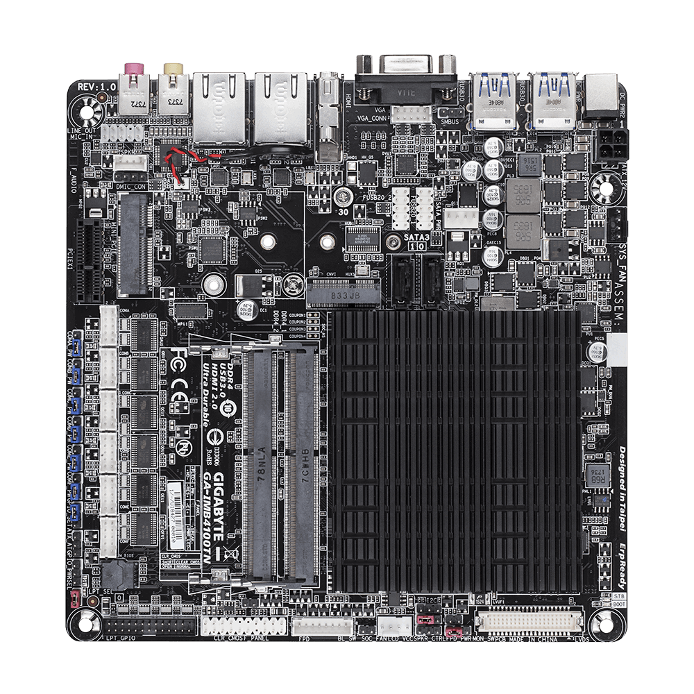 - 2 x DDR4 SO-DIMM socket supporting up to 32 GB of system