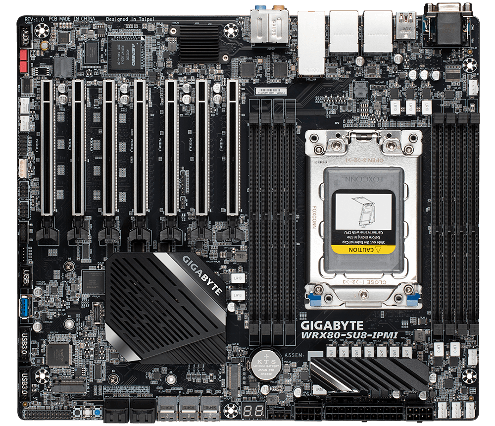 AMD WRX80 Motherboard with sWRX8 4094 Socket, 8-Channel DDR4 RDIMM 8 x DIMMs, Aspeed AST2500 BMC, Dual M.2, Dual Intel Server 10G and 1G LAN, 7 x PCIe 4.0 x16 Slots for multi cards