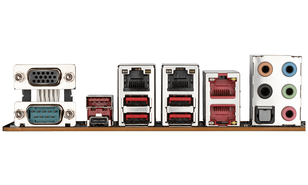 5 x USB 3.2 Gen 2 Type-A ports (red) on the back panel
