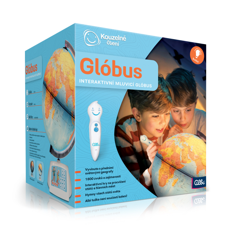 Nebeský glóbus údajně používal už slavný matematik, fyzik a astronom Archimédés ve 3. století před naším letopočtem. Asi by ho nikdy nenapadlo, že jednou bude taková kartografická pomůcka i mluvit. Pomocí Albi tužky můžete interaktivní glóbus rozmluvit a dozvíte se mnoho užitečných a zajímavých informací o téměř 200 zemích světa. Dozvíte se o nich důležitá fakta, hlavní města, něco o dané populaci, politické geografii a spoustu dalších informací.