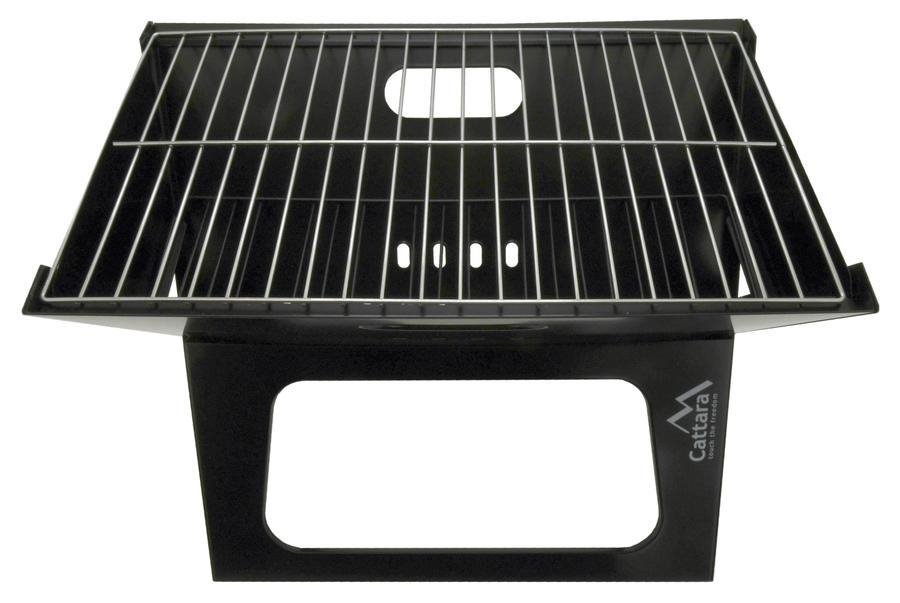 Na přední a zadní straně se nachází ventilace, která zajišťuje plynulý přísun vzduchu. Konstrukce grilu Cattara se vyrábí z kvalitní oceli s černým smaltovaným povrchem. Po sestavení je díky křížovému provedení velmi stabilní.