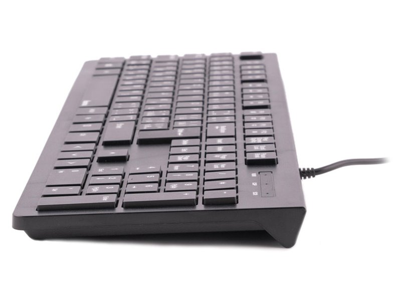 Spolehlivá robustní klávesnice s nastavitelnou výškou, klasickým rozložením kláves a nízkým zdvihem pro příjemné psaní. Její předností je ochrana proti stříkající vodě s odtokovými otvory a snadné čištění. Pogumované nožičky zajistí perfektní stabilitu. Připojení k počítači je realizováno skrze USB port.