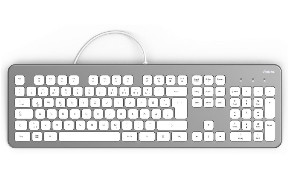 Počítače a kancelář  Počítačové příslušenství a doplňky  Klávesnice, myši, herní ovladače  Klávesnice  Drátové  Hama klávesnice KC-700/ drátová/ USB/ CZ+SK/ stříbrná/bílá
