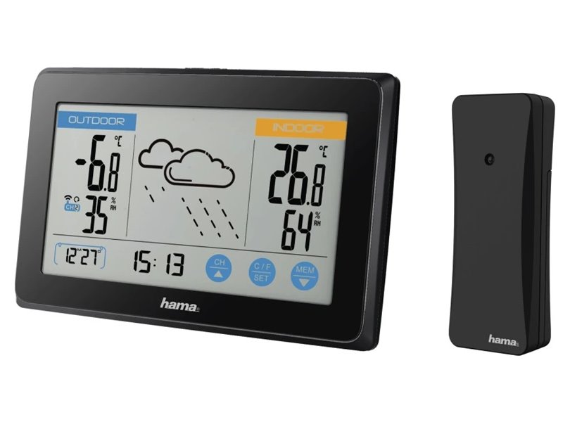 Digitální meteostanice s LCD displejem nabízí zobrazení venkovní a vnitřní teploty, vlhkosti vzduchu, předpovědi počasí, data a času, řízeného rádiovým signálem DCF. Displej lze jednoduše ovládat pomocí tří dotykových tlačítek. Nabízí také možnost podsvícení, které se aktivuje stiskem tlačítka. Samozřejmostí je indikace kapacity baterií základny i čidla nebo paměť pro maximální a minimální naměřené hodnoty teploty a vlhkosti vzduchu.