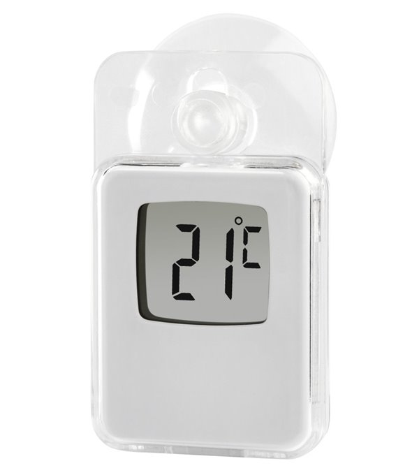 Digitální teploměr nabízí snadno čitelný displej pro zjištění vnitřní, nebo venkovní teploty. Praktická přísavka umožňuje jednoduché připevnění na okno.