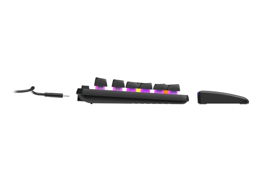 Plnohodnotná klávesnice pro každého vášnivého hráče. Disponuje transparentním povrchem s nastavitelným podsvícením v 7 barvách. Klávesy nabízí možnost vlastního nastavení. Tato nastavení pro různé hry a uživatele včetně světelných efektů lze následně uložit do integrované paměti. Nechybí ani funkce Anti-Ghosting a herní režim, který umožňuje uzamknutí Windows klávesy. Potěší také odnímatelná polstrovaná opěrka rukou. Připojení k počítači je realizováno skrze odpojitelný kabel s USB konektorem.