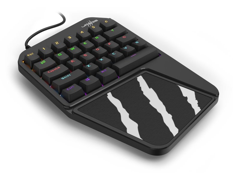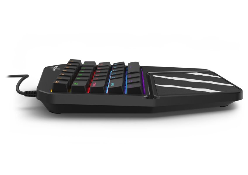 Herní mechanická klávesnice pro každého vášnivého hráče. Je navržena pro používání jednou rukou a perfektně se tak hodí například jako herní klávesnice k notebooku či herním konzolím. Díky spínačům Outemu Blue nabízí výbornou odezvu a výdrž přes 50 milionů stisků. Špičkové pohodlí zajistí integrovaná opěrka dlaně. Samozřejmě nechybí ani RGB podsvícení a funkce Anti-Ghosting s N-Key rollover. Připojení je realizováno skrze USB konektor.
