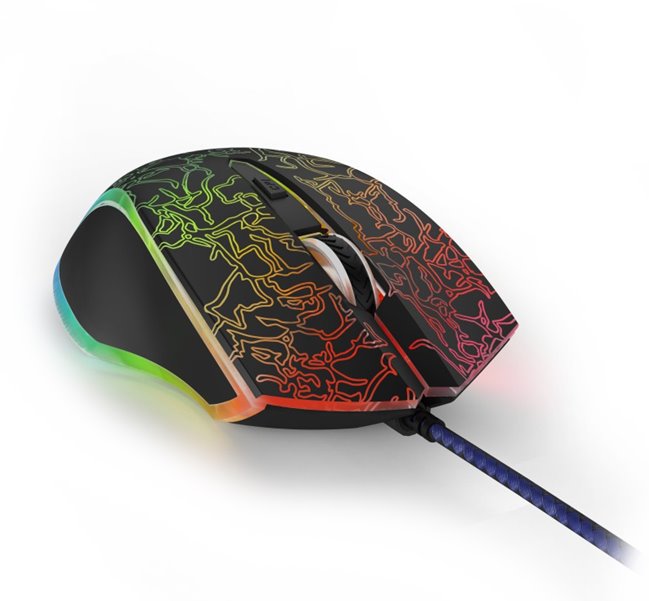 Drátová herní myš disponující RGB podsvícením, optickým senzorem Avago 3212 s nastavitelným rozlišením až 4 800 dpi a kvalitními spínači Omron. Vyniká také nízkou dobou odezvy, 500 Hz obnovovací frekvencí a 6 programovatelnými tlačítky. Napájení je realizováno skrze opletený USB kabel.