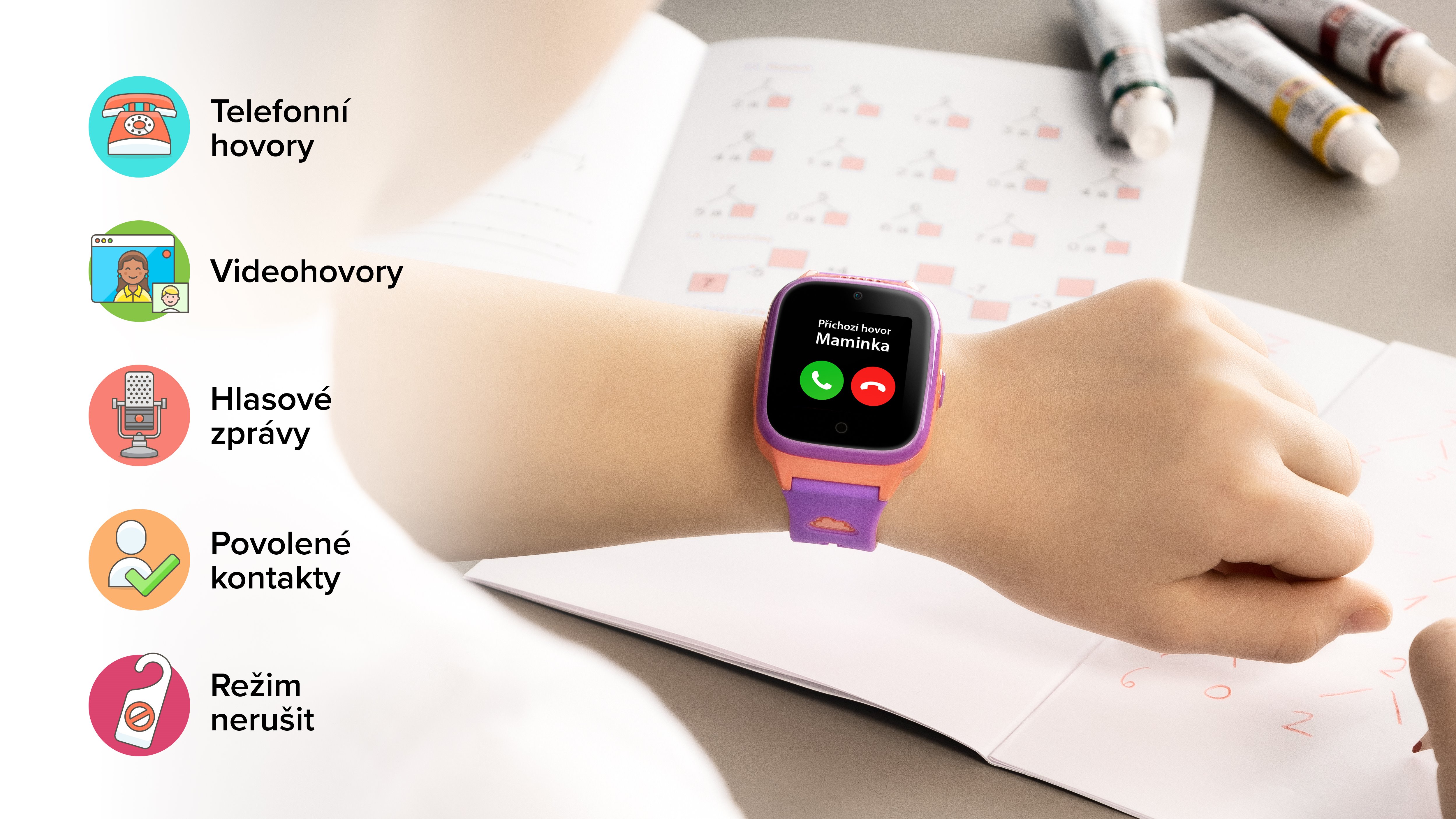 Telefonujte se svými dětmi přes hodinky nebo mu pošlete zprávu, jako kdyby mělo vlastní mobilní telefon. Jelikož mají i kameru, uskutečníte s ním i videohovor. Do hodinek vložíte vyměnitelnou SIM kartu, která je součástí balení, a připravíte je k používání. Nastavíte povolené kontakty, tichý režim během vyučování nebo kroužků a vyzkoušíte mnoho dalších funkcí, které vám hodinky poskytují. Vždy se můžete spolehnout na stabilní signál i vysokou kvalitu hovorů díky podpoře 4G sítí.