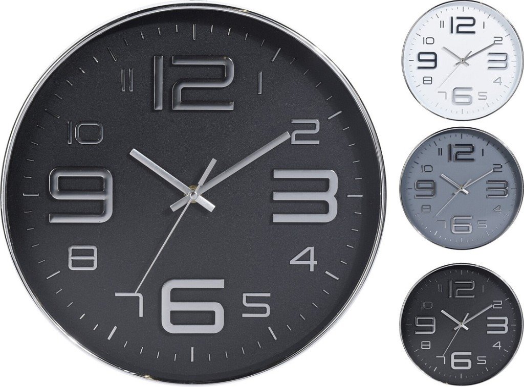 prostoru. Hodiny mají chromovaný rám s proskleným