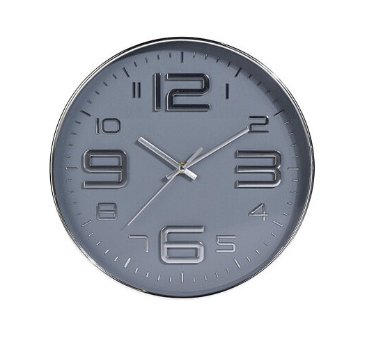 prostoru. Hodiny mají chromovaný rám s proskleným