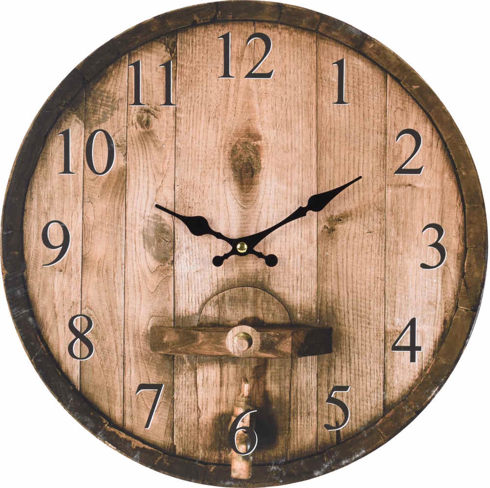 Dřevěné hodiny značky Sengale se skvěle hodí do domácnosti, kanceláře nebo například kavárny. Ručičkové hodiny dodají příjemný vzhled každému prostoru. Svým designem připomínají dřevěný sud. Velký ciferník má černé číslice, které snadno přečtete. Hodiny mají hnědý rám a průměr 33 cm. Fungují na jednu tužkovou baterii AA, která není součástí balení. Hodiny jsou určené k umístění na zeď.