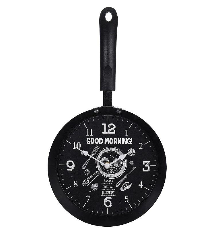 Netradiční designové hodiny ve tvaru pánve v krásném černém provedení. Tělo hodin je vyrobené z kovu i ručičky jsou také kovové. Jistě oceníte absolutně tichý chod, jelikož hodiny netikají. Napájení pouze na 1 tužkovou AA baterii (není součástí balení). Svým provedením se nejlépe nabízí umístění do kuchyně, restaurace, bistra či kavárny nebo do venkovní letní kuchyně.