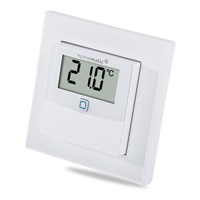 Bezdrátový nástěnný Senzor teploty a vlhkosti (HmIP-STHD) s LED displejem o velikosti 1,74" (4,4 cm) pro zobrazení aktuálních informací představuje inteligentní způsob pro regulaci vytápění a úsporu energií.