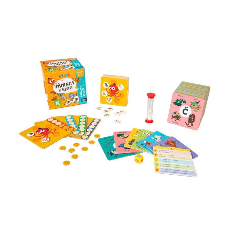 Společenská hra Albi Kvído Písmenka v kostce nenásilnou formou naučí abecedu a rovněž procvičí paměť, pohotovost, smyslové vnímání i veškeré mozkové buňky, díky čemuž dokonale zabaví vaši ratolest a připraví ji na školní výuku. Seznámí s nejčastějšími českými slovíčky, která na dané písmenko začínají, čímž vytvoří dobrý základ pro studium, budoucí kariéru i pro osobní život. Jedná se tak o skvělý naučný prostředek, který je ideální pro předškoláky a školáky ve věku od 5 až do 8 let.