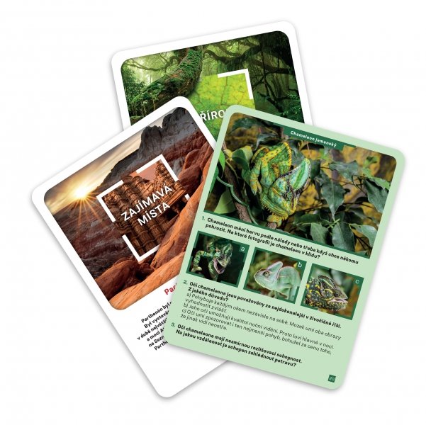 Kvízová hra nové generace, která vznikla ve spolupráci s dokumentárním televizním kanálem Prima Zoom. Těšit se můžete na 4 různé kategorie - příroda, zajímavá místa, věda a technika, historie - které prověří vaše znalosti. Herní karty obsahují spoustu krásných fotografií a 3 různé typy otázek. Hráči sbírají body za správné odpovědi a ten, kdo jich získá nejvíce, vyhrává.