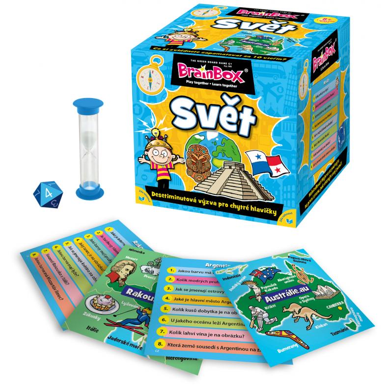 Hra na procvičení paměti, pozorovacích schopností a znalostí. Informace jsou pravidelně aktualizovány a každá karta obsahuje vlajku, hlavní město a hranice státu, a stejně tak i kulturní symboly a pamětihodnosti. BrainBox svět je přeložený do 20 jazyků a jako klasická rodinná hra, vyvinutá a vytvořená v Amershamu v Buckinghamshiru představuje britský příběh úspěchu. Cílem hry je stát se tím, kdo během 10 minut získá nejvíce karet. Je potřeba pozorně prostudovat obrázek na kartě a poté správně odpovědět na položenou otázku.