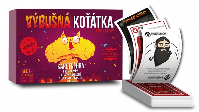 Party edice hry Výbušná koťátka, díky které si můžete zahrát hru až v 10 lidech. Pořádnou párty je potřeba začít ve velkém stylu. Výbušná koťátka je hra s historicky nejvíce přispěvateli na Kickstarteru. Hru vytvořili Elan Lee (XBOX, ARGs), Matthew Inman (The Oatmeal) a Shane Small (XBOX, Marvel), kteří přepsali historii Kickstarteru, když v roce 2015 na jejich projekt přispělo více než 219 000 backerů. Výbušná koťátka jsou extrémně strategickou verzí ruské rulety (jen s koťátky).