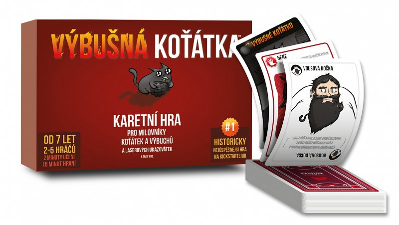 Svižná a velice úsměvná karetní hra postavená na principu Ruské rulety. Historicky nejúspěšnější hra na Kickstarteru. Výbušná koťátka (Exploading kittens) je hra od Elana Lee, Matthew Inmana a Shane Smalla, která v roce 2015 změnila historii crowfundingových kampaní, když na její vznik přispělo přes 219 000 lidí.