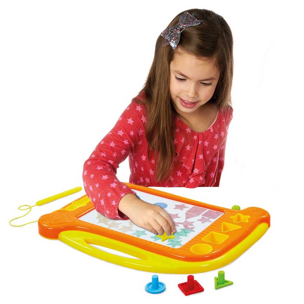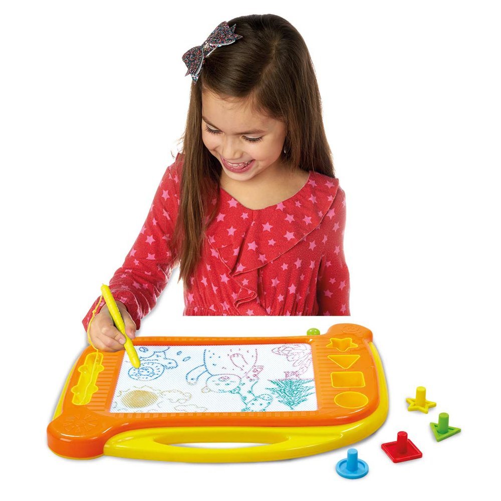 Addo Velká magická kreslící tabulka zajistí, že se vaše děti u malování neumažou. Uchopí magnetické pero a pustí se do tvorby. Pouhým dotykem pera na podložku malují svůj vlastní obrázek. Jakmile je dílo hotové, mohou ho vymazat pomocí čistícího mechanismu a začít znovu. Kromě pera dostanou k velké magnetické tabulce také 4 razítka. Na tabulce najdou rukojeť pro snadné přenášení z místnosti do místnosti, do auta na dlouhé cesty nebo třeba i na dovolenou.