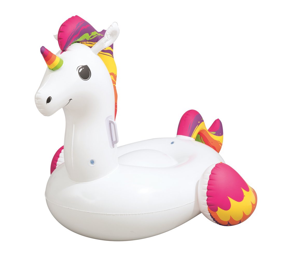 Fantastický Bestway nafukovací jednorožec bude ozdobou každého bazénu a děti si ho zamilují! Jednorožec má na krku praktická madla, díky kterým děti získají větší stabilitu při hře. Bezpečnostní ventily. Vyrobeno z kvalitního a odolného vinylu o síle 0,22 mm.