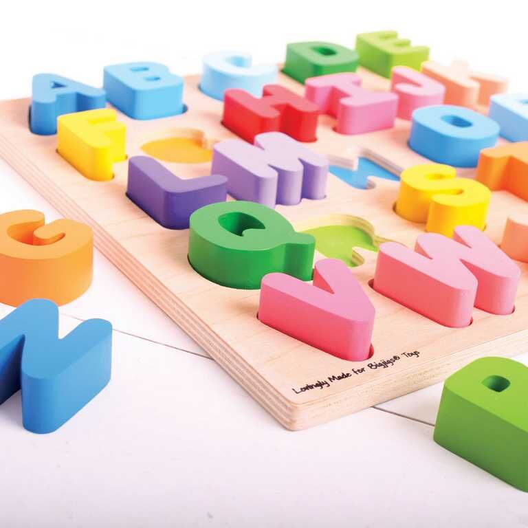 Učení abecedy a pravopisu nikdy nebylo tak zábavné a jednoduché! Vkládací hračka Bigjigs Toys Chunky Alphabet Puzzle představuje ideální didaktickou hračku pro motorický i znalostní rozvoj vašeho dítěte. Každé z 26 dřevěných písmen je barevně sladěno s jeho základním slotem, což pomáhá k procesu učení i dodává hračce vzdělávací hodnotu. Dítě si tak formou hry učí rozpoznávat tvary, barvy a jednotlivá písmena latinky i další dovednosti, jako je kreativita, koordinace a soustředění. Pro tyto vkládací puzzle je charakteristická tloušťka použitého materiálu, který dětem zjednodušuje úchop dílků a zlepšuje bezpečnost hračky.