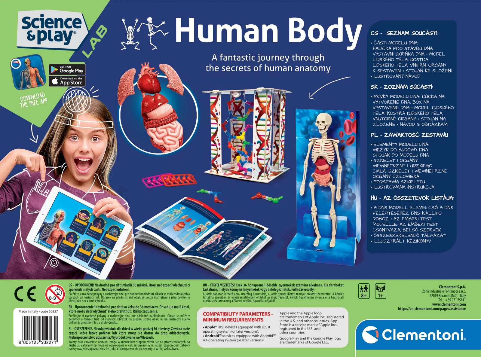 Učí se vaše dítě rádo nové věci a zajímá se o lidské tělo? Pořiďte mu experimentální sadu Clementoni Human Body. Součástí balení je kostra s orgány, knížka s informacemi a dvoušroubovice na 3D model DNA. Váš potomek se lépe naučí o stavbě těla. Pokud se vám toho zdá málo, stáhněte mu aplikaci. Je kompatibilní s mobily a tablety s operačním systémem iOS nebo Android. S její pomocí váš potomek ještě více rozšíří své vědomosti.