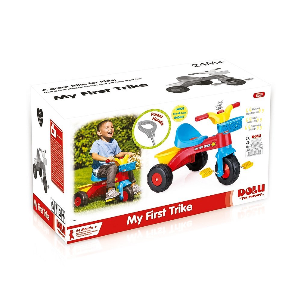 Dětská tříkolka Dolu My First Trike je vyrobena s maximální pečlivostí pro vyšší praktičnost, funkčnost a hlavně spolehlivost, takže bezpečně doveze vaše dítko na místo určení. Má podstatně vyšší stabilitu, je výrazně obratnější, lépe se s ní najíždí na překážky a má také menší poloměr otáčení než běžná dětská kola, díky čemuž se hodí pro ty nejmenší ve věku 2 let a více. Vynikající jízdní vlastnosti, vyvážená konstrukce, nízká hmotnost 3,75 kg a vysoká nosnost až 50 kg dělají z této tříkolky perfektního parťáka pro vaší ratolest, ať už na ni čeká učení nebo krátká vyjížďka.