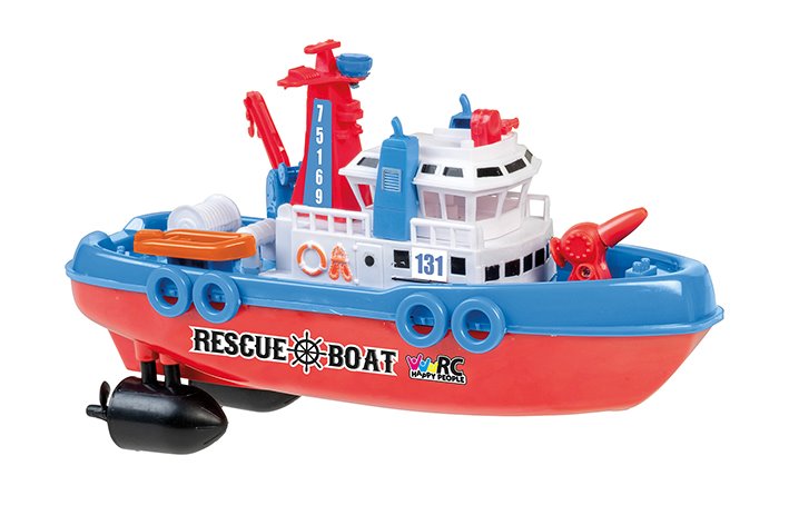 Dvoukanálový člun s pohyblivými částmi od výrobce Happy People. Pohybuje se všemi směry díky dvěma motorům. Zadní šroub pohání ponorku kupředu. S člunem na dálkové ovládání s frekvencí 27 MHz a dosahem až 25 metrů si užijete vy i vaše děti spoustu zábavy. Motory člunu jsou poháněny 3x LR6 AA 1,5V0. A ovladač 2x LR6 AA 1,5V. Baterie nejsou součástí balení.