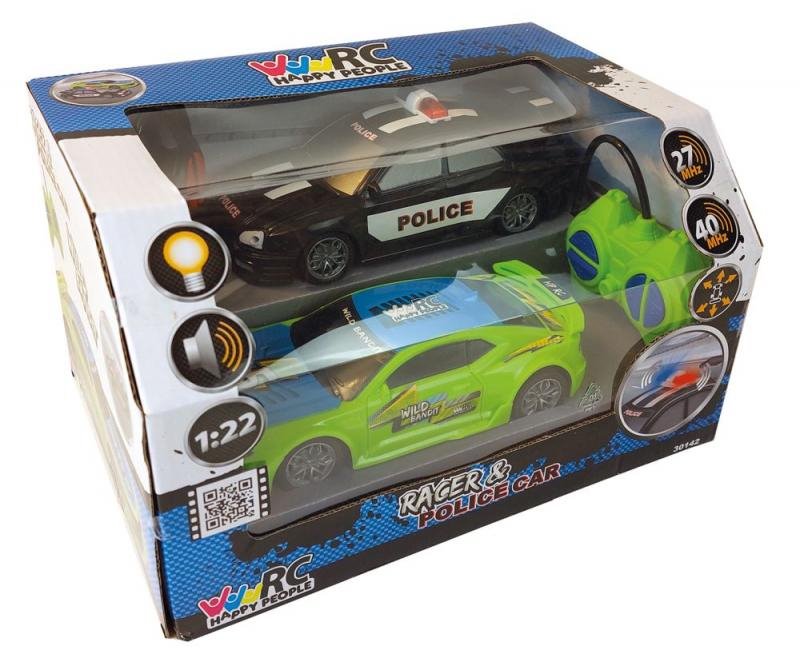 Hračka Chasing set Happy People RC potěší každého malého milovníka závodních aut. V balení najdou rovnou 2 autíčka s dálkovým ovládáním. Pokud máte doma dvě děti, mohou si hrát spolu. Jeden jezdí se závodním autem, druhý řídí policejní auto a poté se vystřídají. Hračka vydává zvuky a různě svítí a bliká. Zabavte své potomky a věnujte se povinnostem nebo odpočinku.