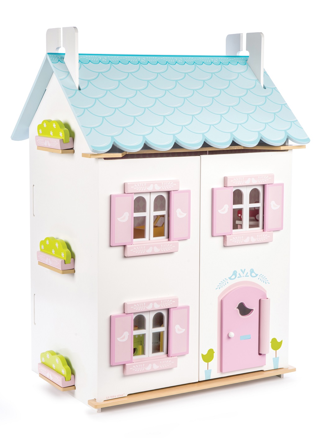Luxusní dvoupatrový ručně malovaný domeček pro panenky značky Small Foot s 37 ks nábytku. Jednotlivé pokoje jsou odlišně zdobené. Domeček má funkční otvírací okna, okenice a dveře. Domeček lze otevřít z jedné strany. Schodiště uprostřed domečku opticky rozděluji spodní patro na dva pokoje a nabízí velký prostor pro hraní a rozvíjení kreativity. Domeček je vhodný pro panenky do velikosti 15 cm.