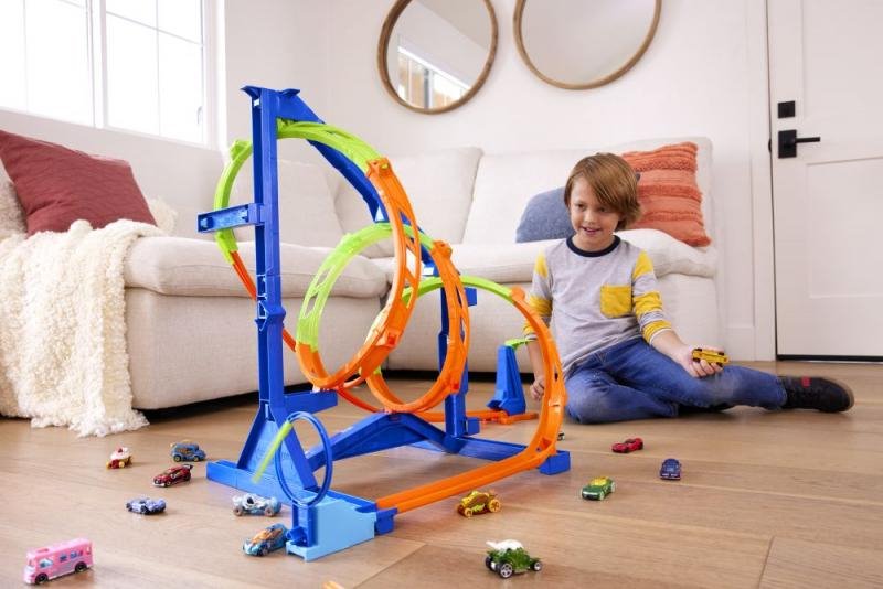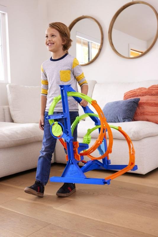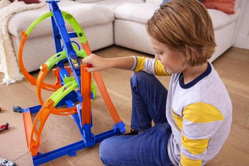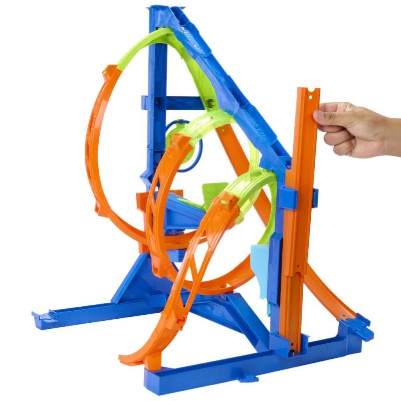 Zabavte děti Hot Wheels® Vývrtkovou dráhou. Po sestavení nebudete o dětech vědět dlouhé hodiny. Se svými autíčky budou pořádat závody. Kdo nejlépe a nejrychleji zdolá náročnou trať. Vystřelit mohou angličáky přes trojitou spirálu, nebo jet přímo na cíl středem vývrtky. Vystřelovací zařízení, cíl a obvodové díly dráhy mají na základně vyhrazená místa pro snadné uložení. K dráze je dodán jeden angličák.