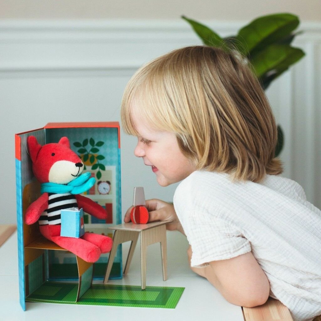 Uvnitř této knihovny potkáte lišáka Francese, který opravdu rád čte knihy na své oblíbené a pohodlné žluté židli. Rád by vám přečetl pohádku. Má měkkou plyšovou srst a milý úsměv. Jeho kniha má velikost tak akorát pro něj a je v ní opravdový text, takže tuto knihu můžete přečíst, pokud umíte anglicky.