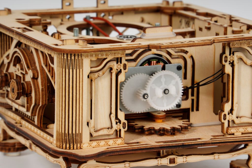 Jakmile celé puzzle z překližky složíte, získáte gramofon v retro designu. Vzhledem připomíná gramofon, který vynalezl Thomas Edison. Přeneste se s ním do 19. století. V balení najdete jednu 7" gramodesku s třemi písničkami - The Merry Gent, Memory Of A Dance a The Giant Killers. Přehrajte si ji na vámi sestaveném gramofonu. Ovládáte ho ručně otáčením kliky, která pohání mechaniku a dynamo. Pokud vám ruční ovládání nevyhovuje, můžete vyzkoušet elektrický pohon pomocí vestavěného micro-USB konektoru. Zároveň si na otočném ovladači upravíte hlasitost hudby. Vlastníci desek o rozměrech 17,5 cm (7") a 25 cm (10") si tyto puzzle zamilují.